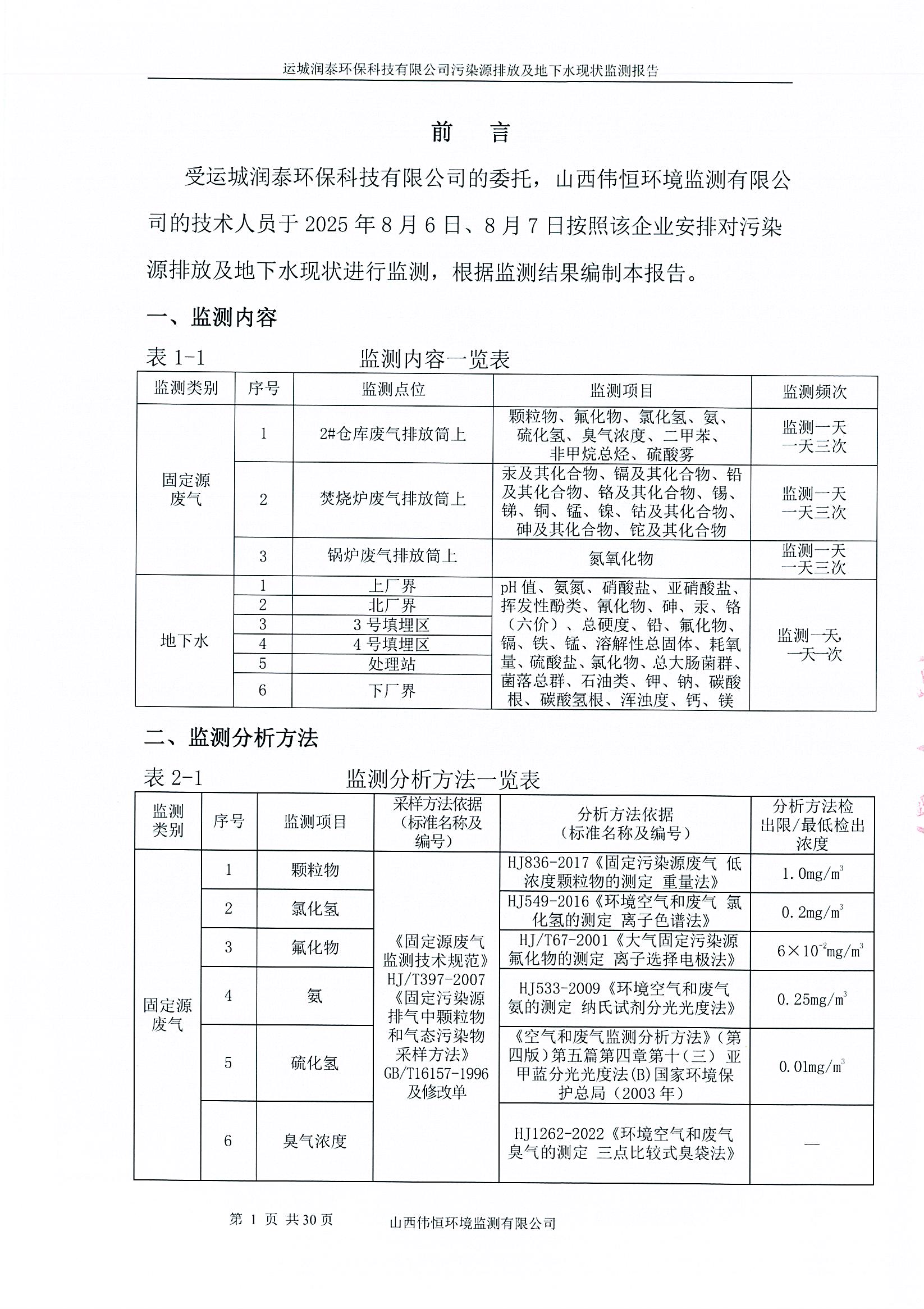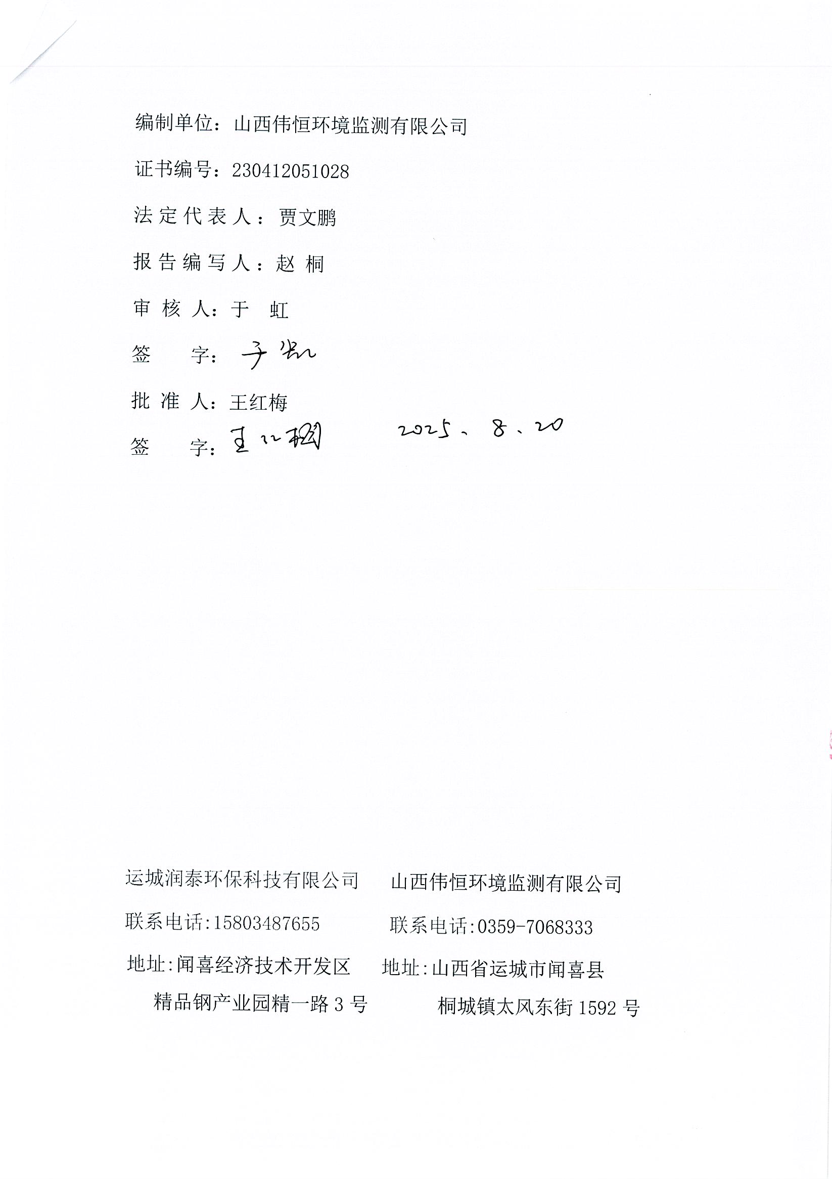 2025年潤(rùn)泰環(huán)保八月份自行監(jiān)測(cè)報(bào)告