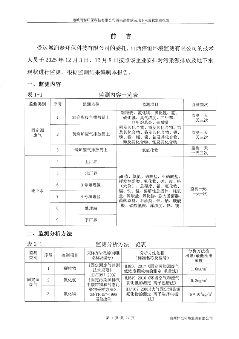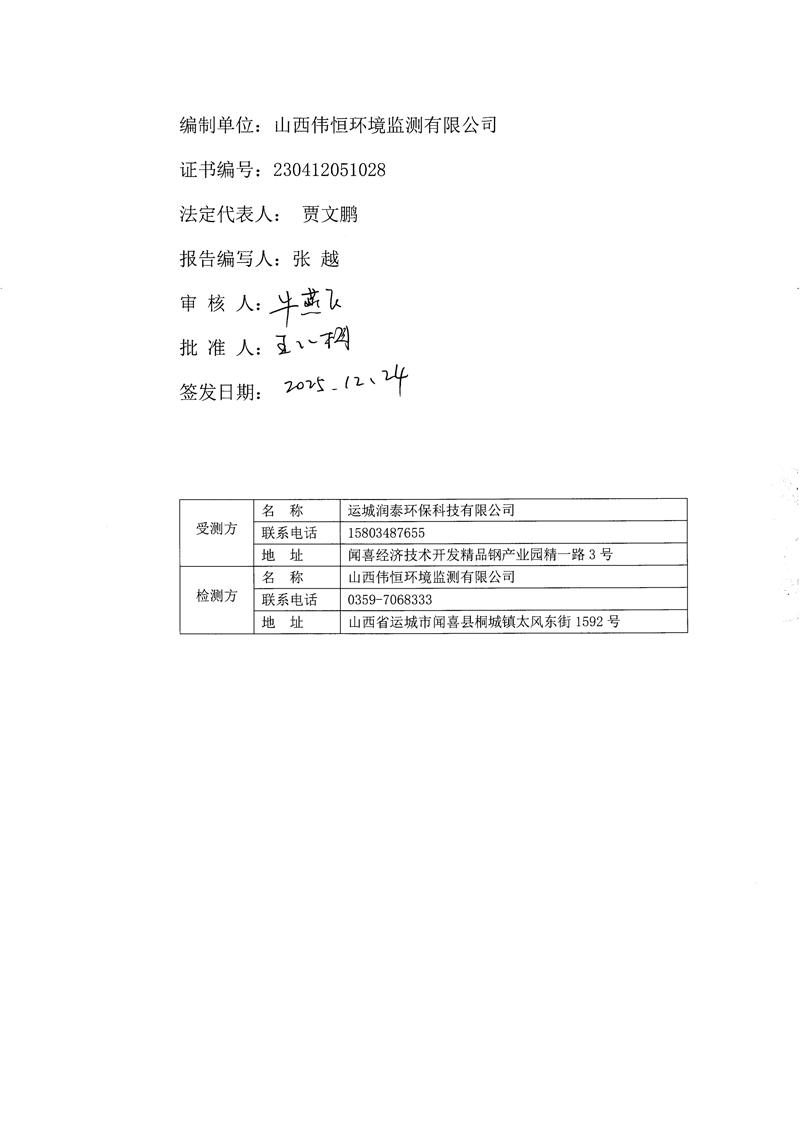 2025年潤(rùn)泰環(huán)保十二月份自行監(jiān)測(cè)報(bào)告