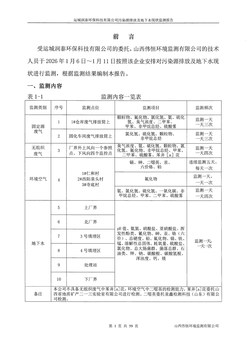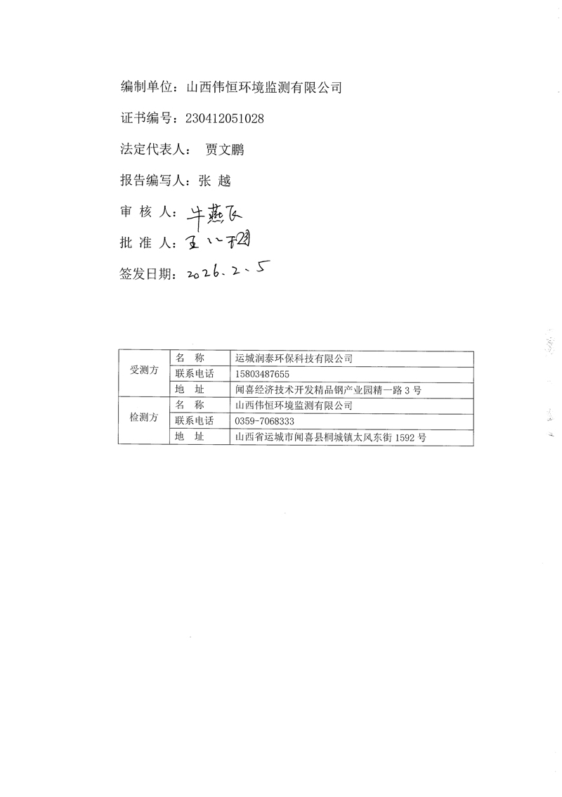 2026年潤(rùn)泰環(huán)保一月份自行監(jiān)測(cè)報(bào)告
