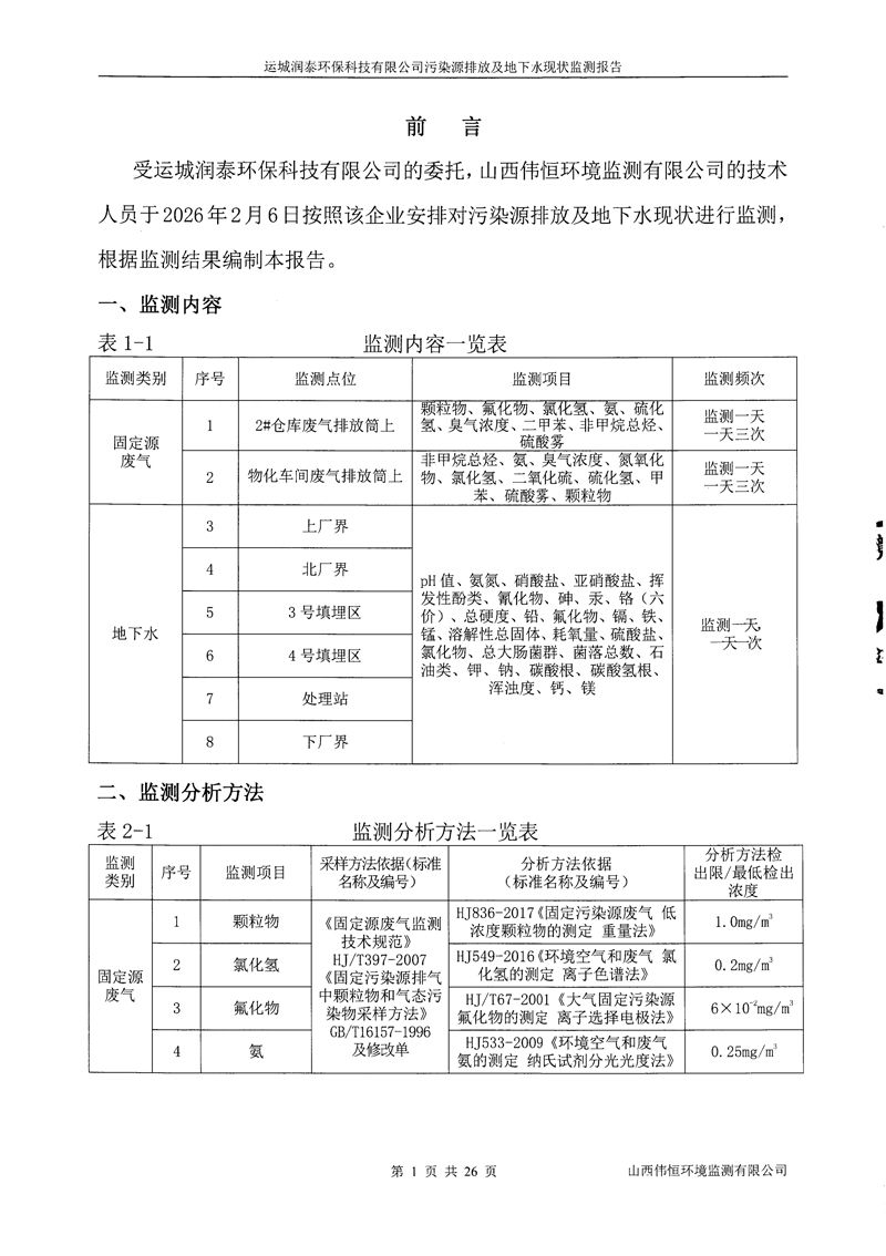 2026年潤(rùn)泰環(huán)保二月份自行監(jiān)測(cè)報(bào)告