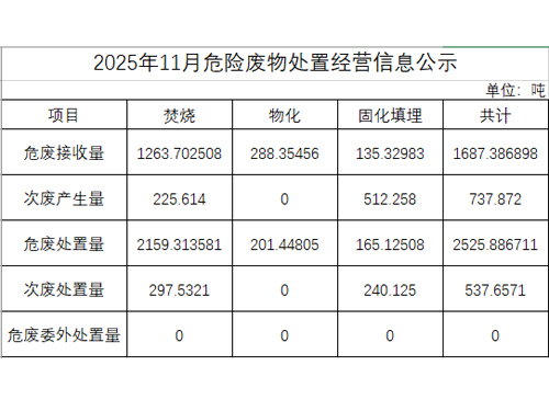 2025年11月危險(xiǎn)廢物處置經(jīng)營(yíng)信息公示