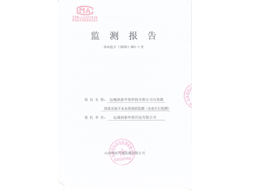 2026年潤(rùn)泰環(huán)保一月份自行監(jiān)測(cè)報(bào)告