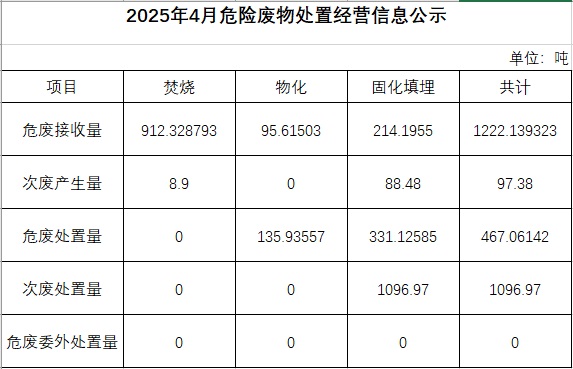 2025年四月危險廢物處置經(jīng)營信息公示