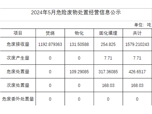 2025年五月危險廢物處置經(jīng)營信息公示