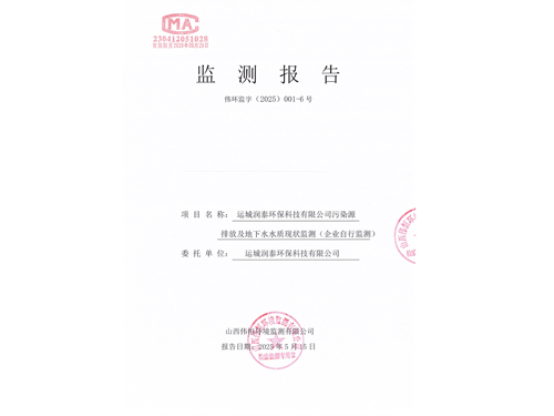 2025年潤泰環(huán)保四月份自行監(jiān)測報告