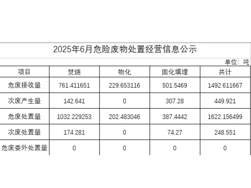 2025年六月危險廢物處置經(jīng)營信息公示