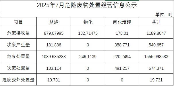 2025年七月危險廢物處置經(jīng)營信息公示