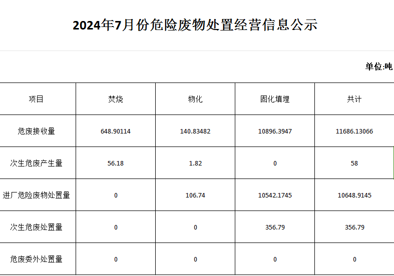 7月危險廢物處置經(jīng)營信息公示